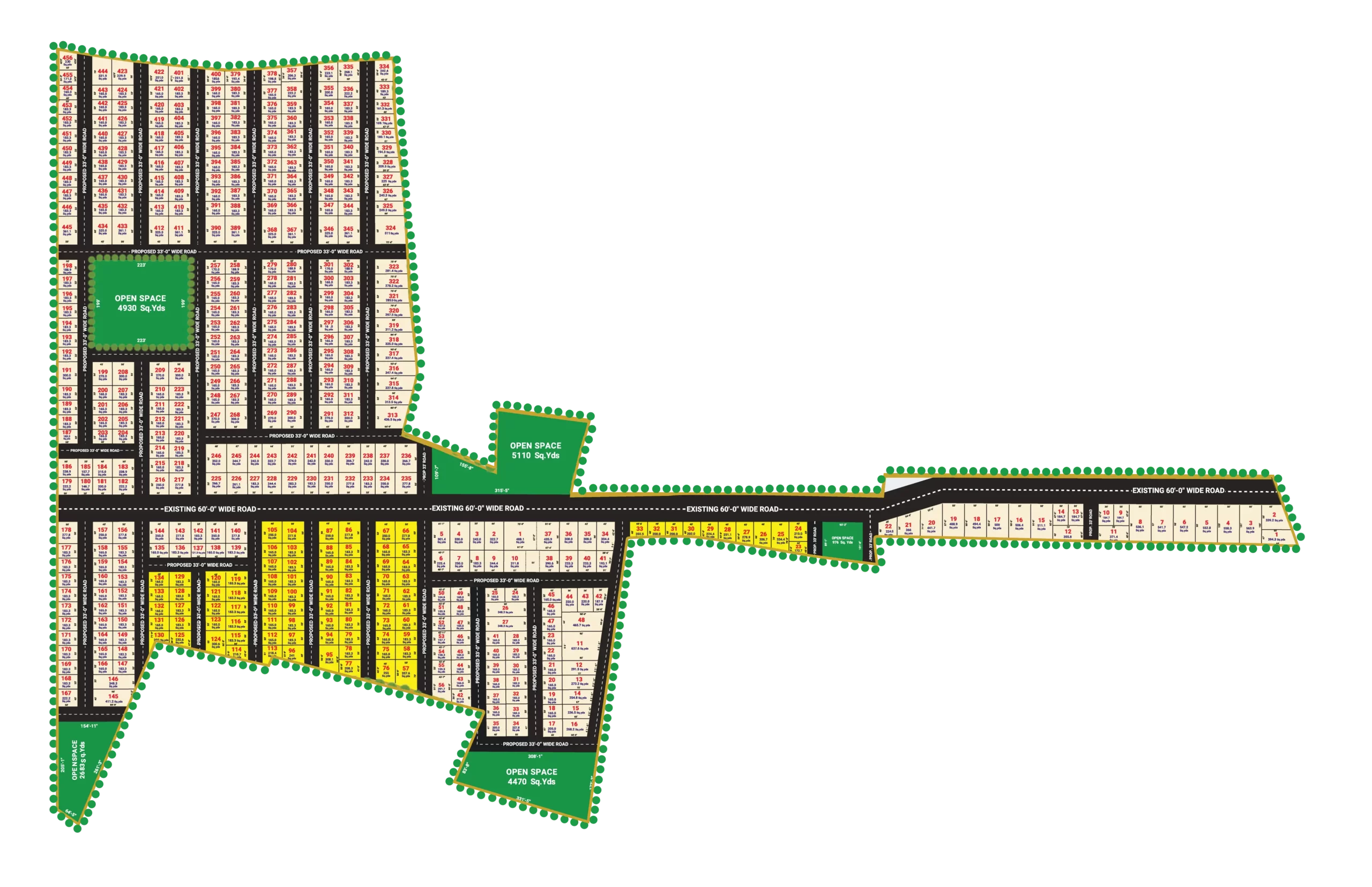 • 60 and 33 Feet wide Black Topped roads